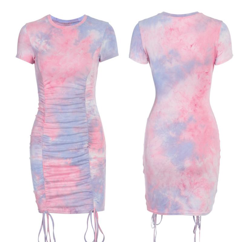 Buy Women Short Sleeve O Neck Bodycon Mini Dress Gradient Colorful Tie Dye Print Ruched Side Drawstring Tight Party Clubwear At Affordable Prices Free Shipping Real Reviews With Photos Joom